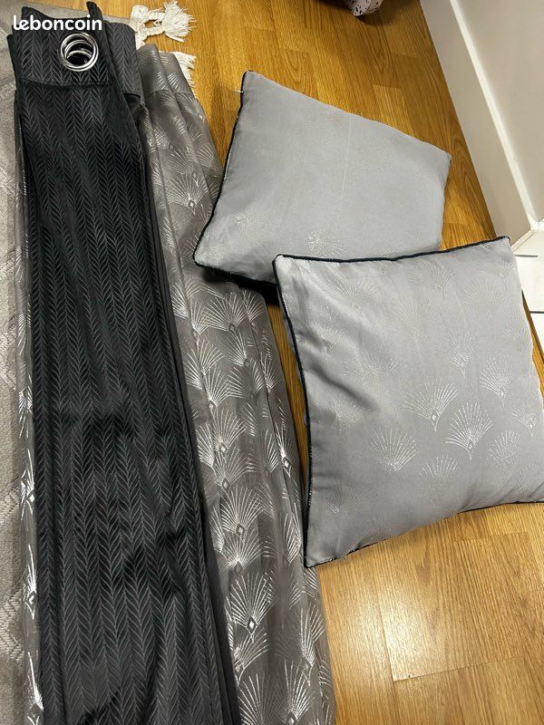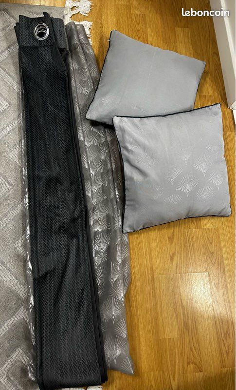 Rideaux ( 1 voilage et 1 rideau occultant) et 2 petits coussins À DONNER