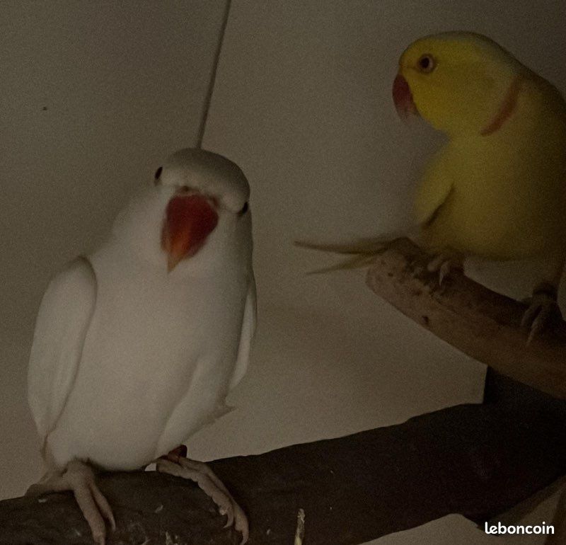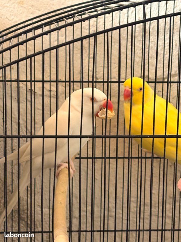 Couple perruche à collier mâle jaune femelle blanche bague 2023