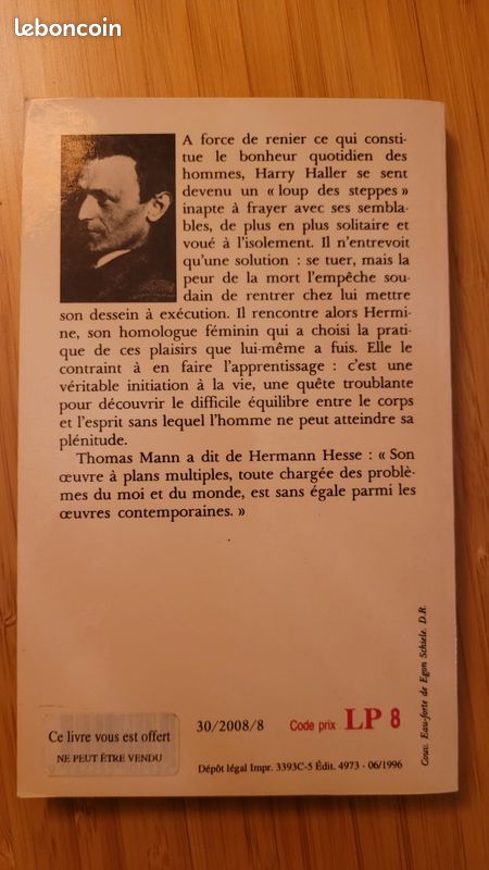 Je vends ce roman "Le Loup des steppes" de l''auteur Hermann Hesse.