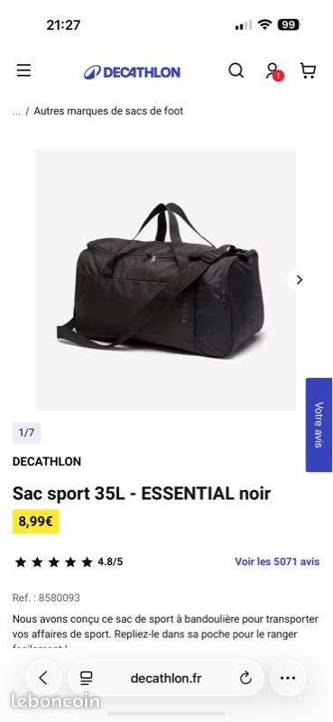 Bonjour, je donne ce sac de sport pliable Kipsta