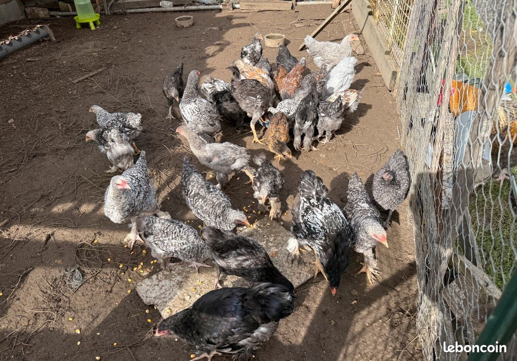 Bonjour j’ai des poules pondeuses, des poussins et des coqs, vivant en plein air, croisement (Brahma doré, Sussex, Harco …) idéale poules pondeuses.