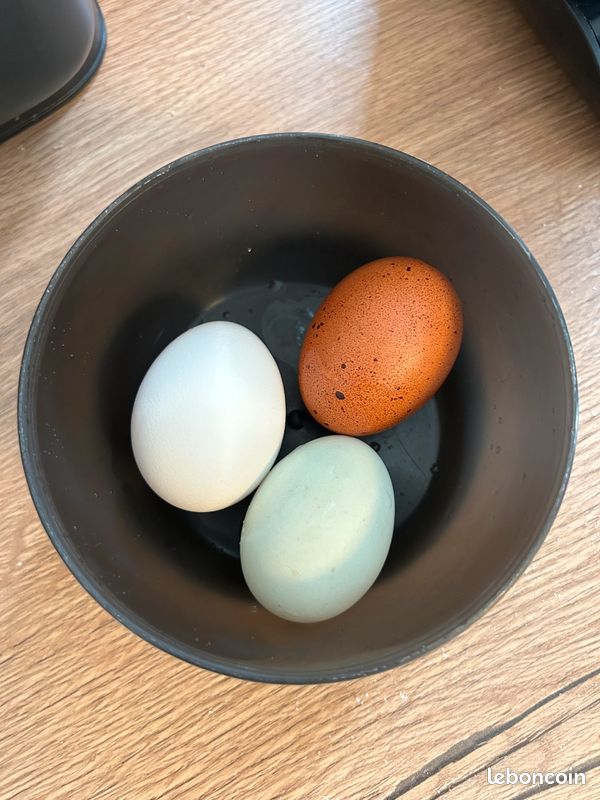 Échange poule cream legbar d''un an en parfaite santé contre une Olivette (olive egger) ou une Orpington. La cream legbar a deja commencé à pondre en fin de saison dernière des oeufs bleu comme sur la photo 3. Je reste ouvert à toute proposition.