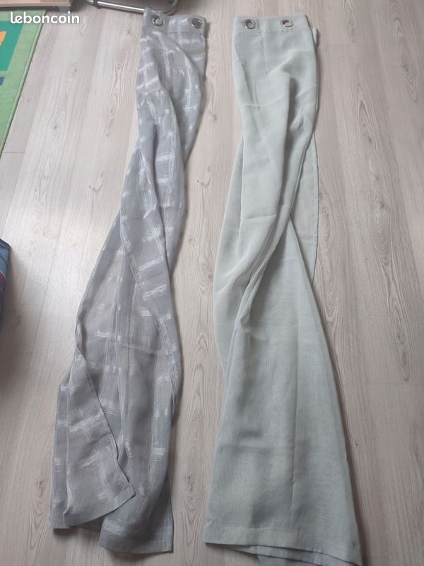 Je donne 2 rideaux gris+ 2 rideaux blanc dimensions 150*180cm environ.